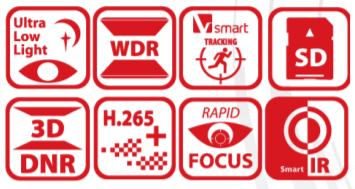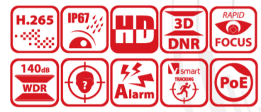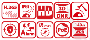 - 120dB WDR, 3D DNR, EIS, HLC, Smart IR